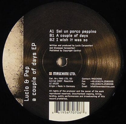 | Tracks | A1: Sei Un Porco Peppino B1: A Couple Of Days B2: I Wish It Was So |