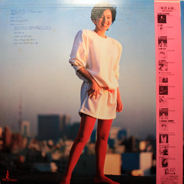 This album includes Japanese disco versions of Michael Jackson’s “Billy Jean”, Zombies’ “Tell Her No”, Irene Cara’s “What a Feeling” (from the soundtrack “Flashdance”), and Frank Stallone’s “Far From Over” (from the soundtrack “Staying Alive”).