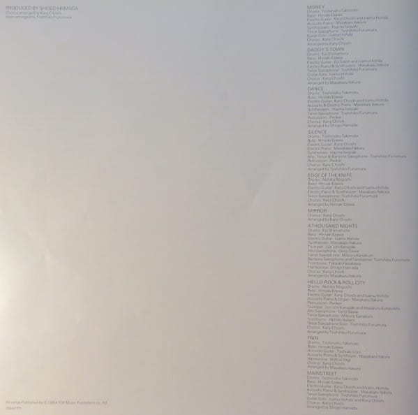 | Tracks | A1: Money A2: Daddy's Town A3: Dance A4: Silence B1: Edge Of The Knife B2: Mirror B3: A Thousand Nights B4: Hello Rock & Roll City B5: Pain B6: Mainstreet |