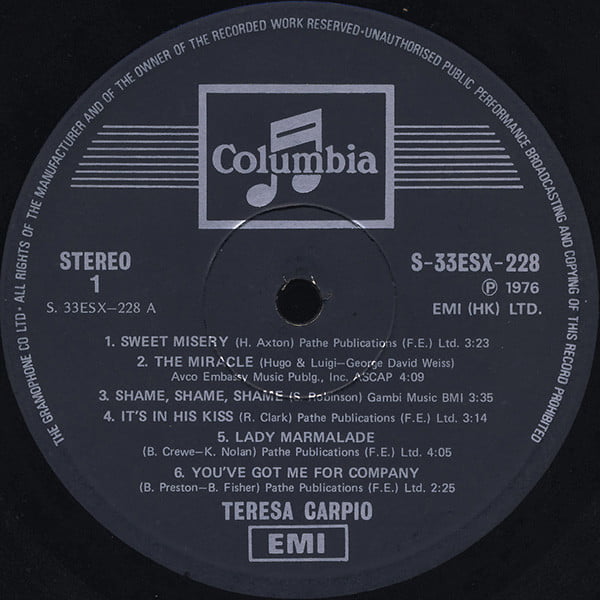 A1 Sweet Misery has an amazing drum intro, is perfect 70s funk and soul. Carpio is amazing on this album, look at her range. Great 70s disco on A3.